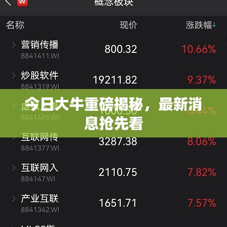 随着金融市场的不断发展和变化,大牛股的消息一直是投资者关注的焦点,我们将为您带来关于“今日大牛最新消息”的全面报道,带您了解最新的市场动态和投资风向。